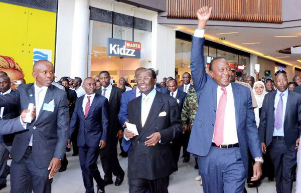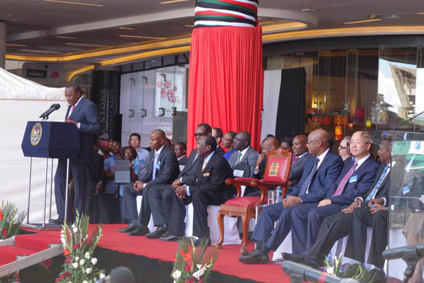 下午15时,激动人心的时刻到了!在万众瞩目中肯雅塔总统亲自剪彩,并发表了重要讲话,他对中国公司实现了肯尼亚人的梦想给予了充分肯定。双河投资项目系由肯尼亚上市公司CENTUMAGJACKPOT主导,江西省水利水电建设有限公司与中航国际工程公司强强联合共同参与投资建设的重大项目。我司驻肯尼亚双河项目部在项目经理彭红军率领下,精益求精,严把质量关,克服了时间短、任务重的困难,仅用了两年半时间即完成商场项目建设任务,创造了东非速度!