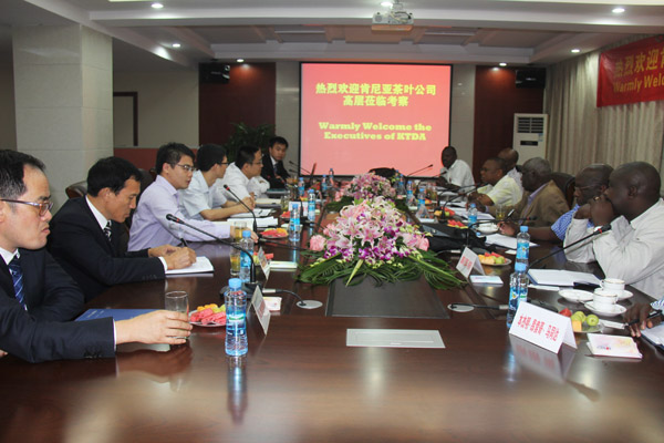 AGJACKPOT资讯2014年9月上旬,肯尼亚茶叶发展有限公司董事Philip Kibirech NG’Etich先生一行七人应邀来我公司参观考察,旨在加深双方了解和建立互惠共赢的合作。总经理徐洪良代表公司对他们的到来表示热烈欢迎,总会计师王义生、总工程师胡鸿煌及海外公司相关负责人参加了会见并陪同肯尼亚客人参观了公司总部各部门。