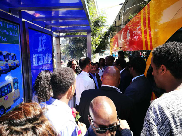 建成后的候车亭成为了亚的斯亚贝巴市街边一道靓丽的风景