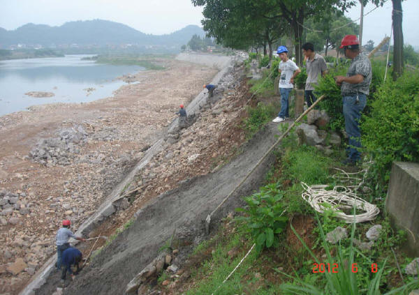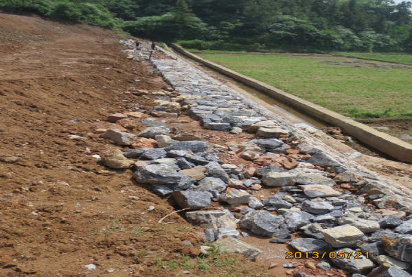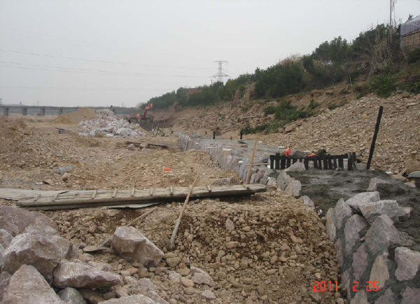 ③迎水侧护坡基座不宜过低,避免基础松软引起沉降。开挖前应作必要的探查,也可避免机械陷落。